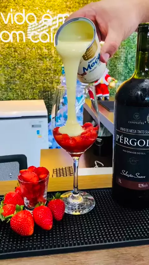 Morango, leite condensado e vinho suave pérgola! #drinks #bebidas