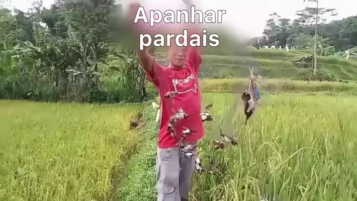 Os pardais indonésios são inundados para afetar o arroz, e os agricultores usam redes para pegá-los.