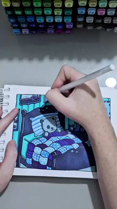 A responder a @dribernardini Bobbie Goods Quarto todo azul Desafio pintar apenas de uma cor Bobbie goods colcha #marcadores #canetatouch #coloring #Aquarela #coloring