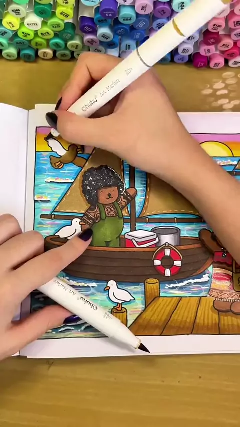 Respondendo ˗ ꒰📎 Colorindo Bobbie goods inspirado no filme da Moana, com a participação do Maui e seus mascotes 🐷🐓 Quem aí já assistiu Moana 2? Eu amei demais o resultado dessa página 🌊 #bobbiegoodscoloringbook #moana #moana2 #marcadorestouch #inspiração