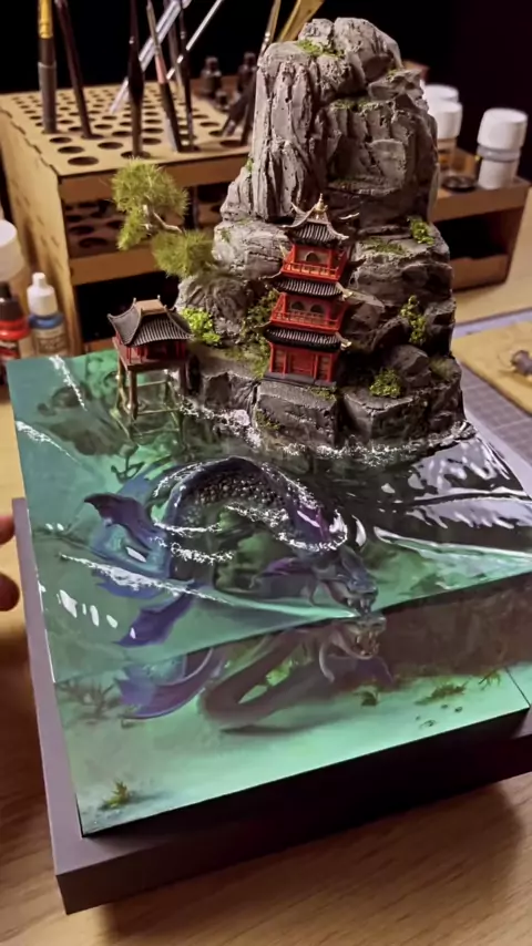 Cada um dos nossos dioramas é como um estado da arte. Não há modelos e cada trabalho é cuidadosamente feito à mão a partir do zero. # miniatura # dragão # dioramas # museu # minitijolos # artesanato # japonês