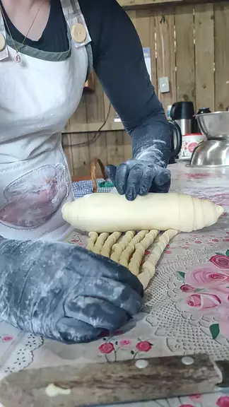 enrolando pão caseiro