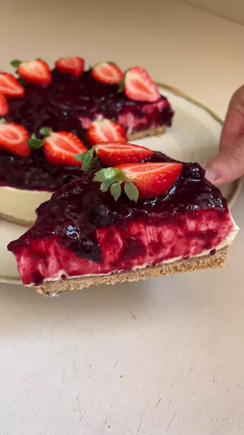 CHEESECAKE SEM FORNO 🍓 Essa é aquela receita de cheesecake ideal, fácil de fazer e extremamente deliciosa!! Base: 200g de bolacha maizena 100g de manteiga Creme: 600g de cream cheese 200g de creme de leite 400g de chocolate branco derretido 30g de suco de limão Calda: 400g de frutas vermelhas 100g de açúcar 30g de suco de limão Morangos por cima para decorar Modo de preparo no vídeo! 🔝🟢 Créditos da receita @felipekoiff segue, curte #cozinha #confeitaria #brasil #comidadiária #kwai