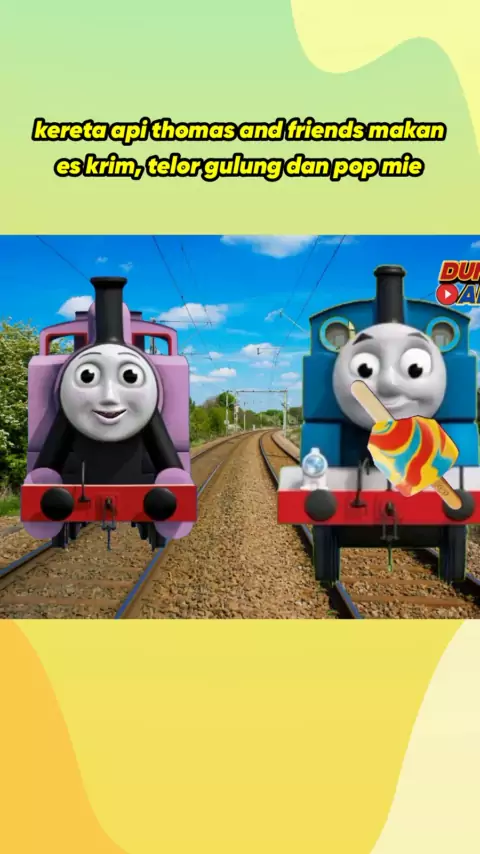 kereta api thomas and friends makan es krim, telor gulung dan pop mie