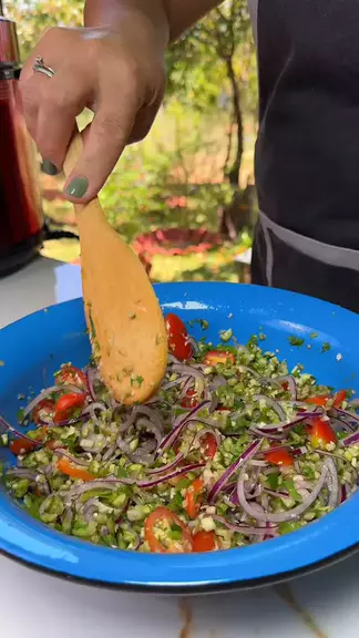 Até quem não gosta de jiló vai amar comer ele assim! 🥗 Salada de jiló deliciosa que não amarga e super fácil de fazer! É só cortar o jiló bem fininho, deixar de molho na água com sal por 1 hora e depois misturar com tomate-cereja, bastante limão, cebola roxa, cheiro-verde, azeite e sal tudo a gosto. Depois é só aproveitar essa delícia! 😋 Salva a receitinha ♥️ #saladadejilo #receitafacil #comidacaseira #almoçodelicia