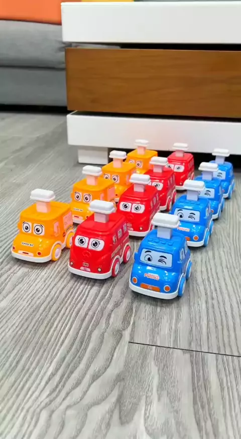 Crianças press-back carro dos desenhos animados brinquedo inércia jogar carro de polícia carro de bombeiros O estilo é mais novo e o bebê joga mais feliz.