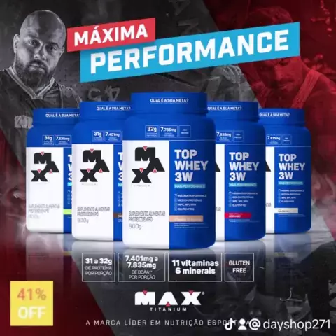 Whey Protein Top Whey 3w Mais Performance 900g Max Titanium . . . . . . . . . #whey #wheyprotein #maxtitanium #Shoppe