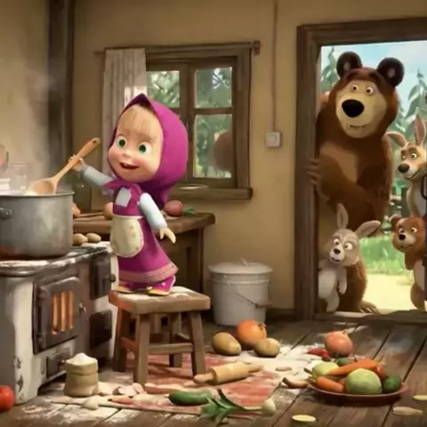 Masha fez estrago na cozinha e assustou o urso! #desenho #dublagen