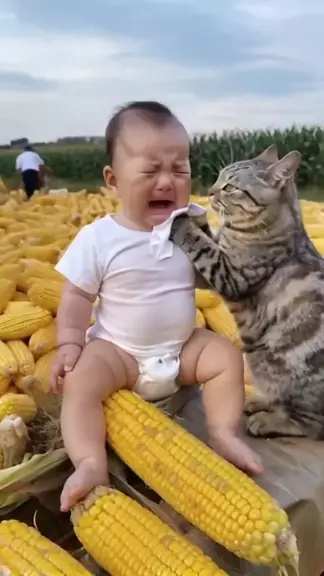 Gatinho fofo tá consolando o bebê! #Cartoon #maisviews
