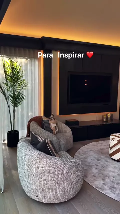 Uma sala linda, arejada e com muita iluminação, que transmite requinte ao ambiente! Lustres pendentes e imponentes, dão um toque de elegância e charme ! Um luxo 🥰❤️Se gostou “, comenta , compartilhe e me siga para mais inspirações e dicas 😉 #salasdecoradas #lustrespendentes #iluminacaonadecoracao