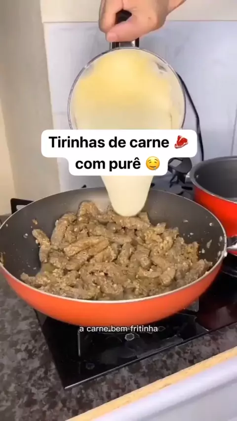 Tirinhas de carne 🥩 com purê de batata 🥔 bora fazer minha gente muito fácil e fica muito bom #kwai #comida #ifood #carne #batata