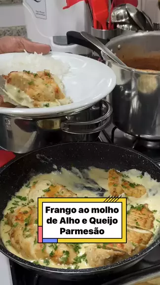 Frango ao Molho de Alho e Parmesão 1,2 Kg de Peito de Frango; 01 Xícara (chá) Parmesão Ralado; 05 Dentes de Alho; 05 Colheres (sopa) Manteiga; 1/2 Xícara (chá) Farinha de Trigo; 03 Colheres (sopa) Azeite; 03 Colheres (sopa) Salsinha; Sal e Pimenta do Reino a Gosto; 250 ML de Creme de Leite Fresco; 01 Pitada de Noz Moscada; #receitas #amo #amocozinhar #deliciasdaeleni