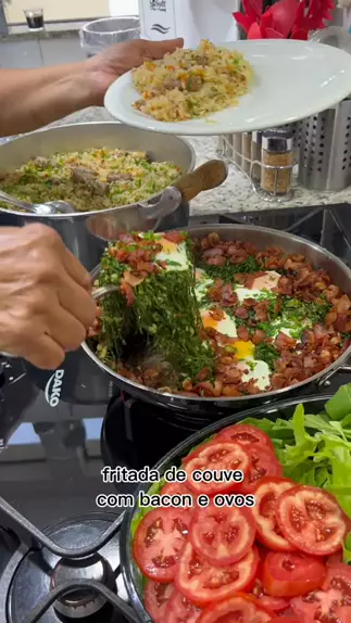 Fritada de Couve Com Bacon e Ovos 350 Gramas Couve; 08 Ovos; 450 Gramas Bacon; 03 Colheres (sopa) Azeite; 01 Cebola; 04 Pimentas Cumari; 02 Dentes Alho; Sal a Gosto; 01 Colher (café) Pimenta do Reino; 04 Colheres (sopa) Cheiro Verde; #receitas #amo #amocozinhar #deliciasdaeleni