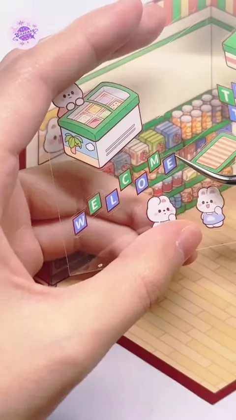 ASMR 3D DIY Scene Sticker: Bunny Supermarket🧃#asmr #stickers #cutesticker #stickershop #scene