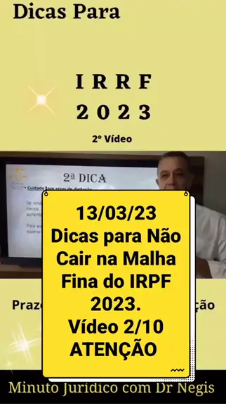 #ComentaristaDeNotícias Dicas para NÃO CAIR NA MALHA FINA DA RECEITA FEDERAL - IRRF 2023. Vídeo 2/10 #SejaCriador #KwaiFamilia #Ultra10Kvis #irrf2023 Quer saber mais? Inscreva-se nos nossos Canais e Fique por dentro das principais notícias jurídicas. Linktree https://linktr.ee/negisadvocacia www.negis.com.br