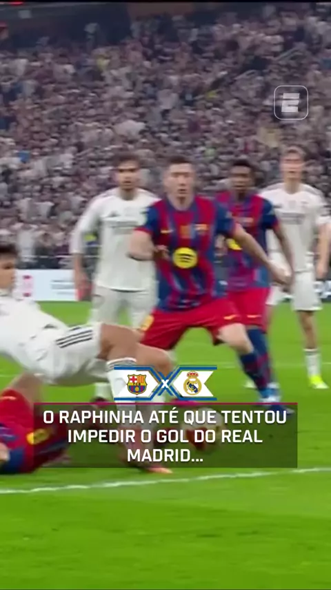 Raphinha se esforçou para impedir a jogada, mas o Real Madrid marcou o segundo gol. Assista à Barcelona x Real Madrid, AO VIVO, pela ESPN no Plano Premium do #DisneyPlus. #SupercopaNaESPN #Barcelona #RealMadrid #ElClásicoNaESPN