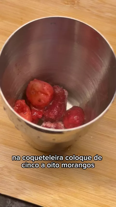 Caipirinha sem álcool ✨ . Você vai precisar de: 🧊 5 a 8 morangos 🧊 200ml de água de coco 🧊 2 colheres de açúcar 🧊 Gelo . Me SIGA para mais receitas! #semalcool #caipirinha