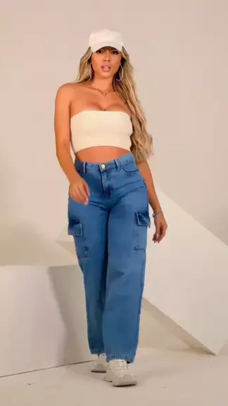 A calça jeans wide leg cargo cintura alta #looks #roupasfeminina #modas #elegancia #roupas