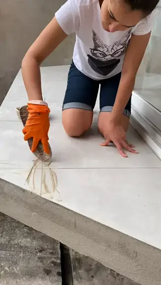 Rejuntei todo o piso usando um chinelo como espátula .#dica #Dicadedonadecasa #dicadodia #dycasdacarla #fazai