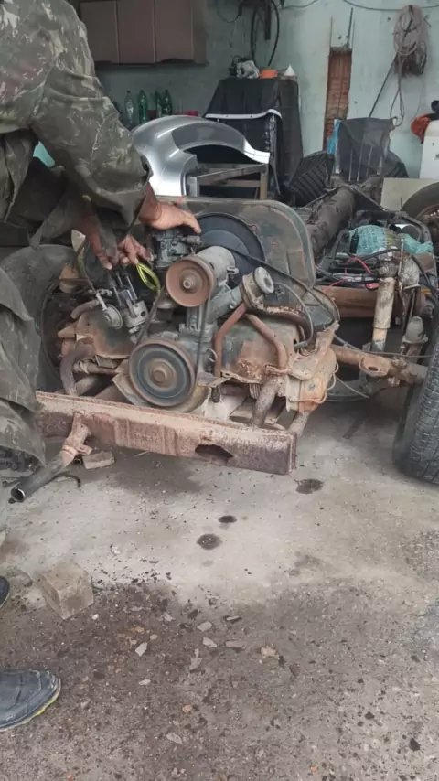 15 anos parado, e pegou na primeira!!!!! carro bom é outra coisa #fusca #fuscaazul #Oficina #rj #viral
