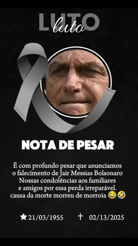Hoje nos despedimos de [Jair Messias Bolsonaro], que faleceu nesta manhã devido a um ataque cardíaco. Nossos sentimentos à família e amigos. 🖤