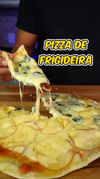 PIZZA DE FRIGIDEIRA DE 4 QUEIJOS E a massa é feita com apenas 4 ingredientes! Ingredientes: 250g de farinha 120ml de água morna 35ml de azeite 1 colher de chá de sal Misture bem todos os ingredientes, passe plástico filme e deixe descansar aproximadamente 25 a 35 minutos. #brunoeeeats #luccaeeeats #receita #receitas
