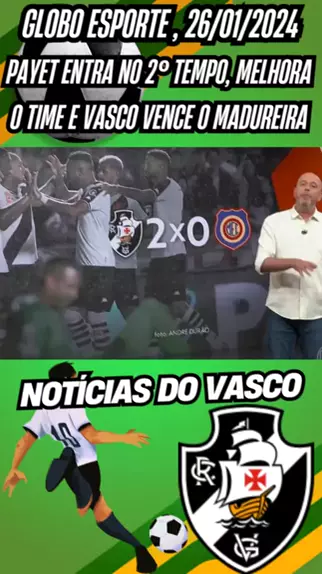 Globo Esporte RJ, 26/01/2024 Últimas notícias do Vasco no Campeonato Carioca Payet entra no 2° Tempo, melhora o time e Vasco vence o Madureira Vasco X Madureira, Campeonato Carioca