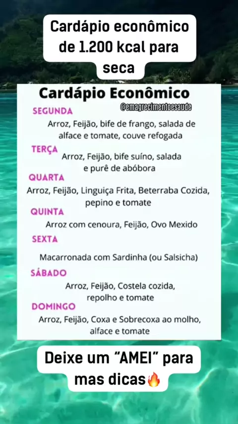 Cardápio econômico de 1.200 kcal #Saúde #emagrecimento #fitness #dieta #vidasaudavel