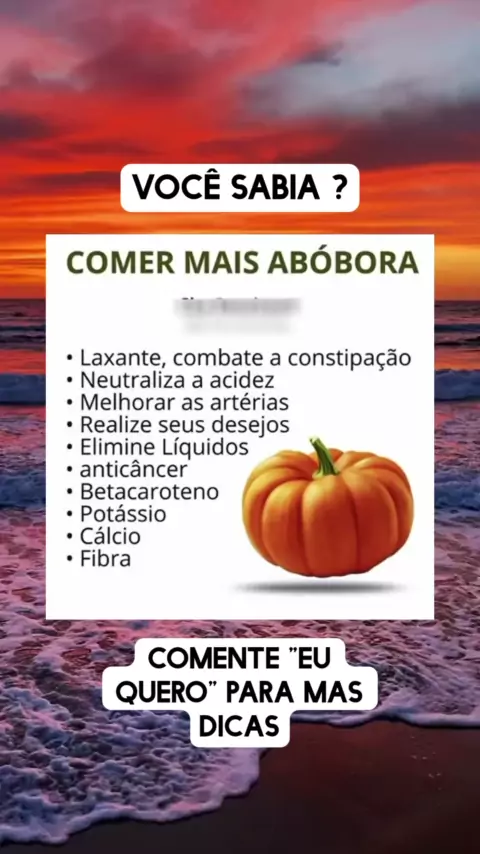 Benefícios de comer mas abóboras. #Saúde #vidasaudavel #BemEstar #dicasdesaude #vocesabia