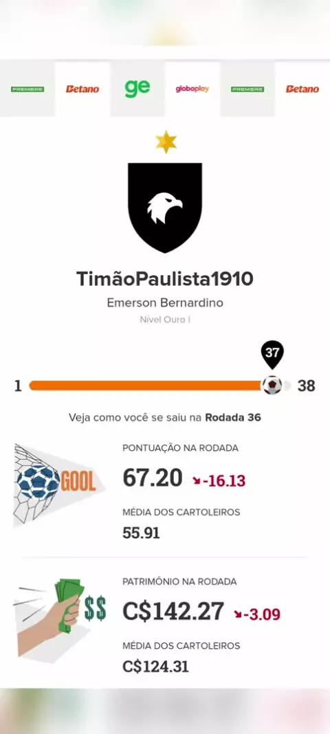 Cartola FC 36° rodada TimãoPaulista1910 ⚫️⚪️⚫️🦅 #cartola #RumoAMitagem
