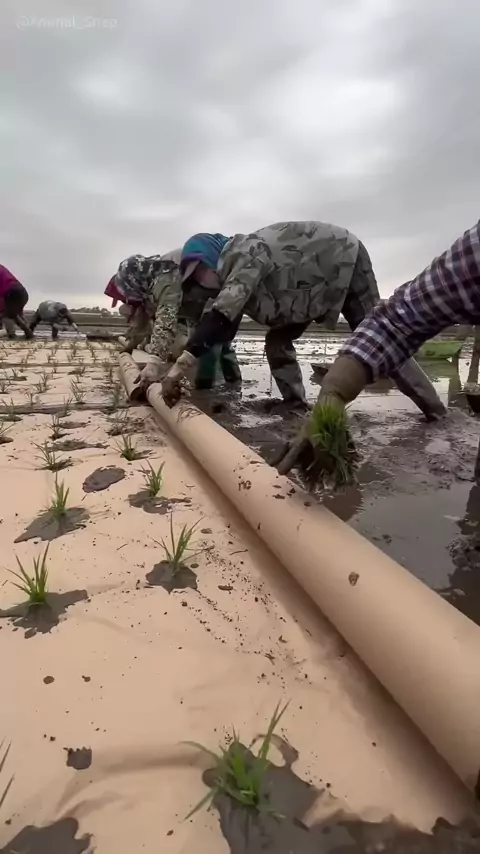 Esse campo de arroz está coberto com um filme especial, seguido pelo transplante das mudas de arroz #educação #curiosidades #conhecimento #plantação #agricultura