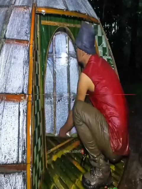 Esse homem está construindo um abrigo usando bambu e papel filme para se proteger da chuva e do frio, confira o vídeo e veja o resultado final. #sobrevivencianamata #parque #sobrevivencianaselva #Natureza #floresta
