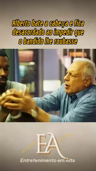 Alberto bate a cabeça e fica desacordado ao impedir que o bandido lhe roubasse. #cena #novela