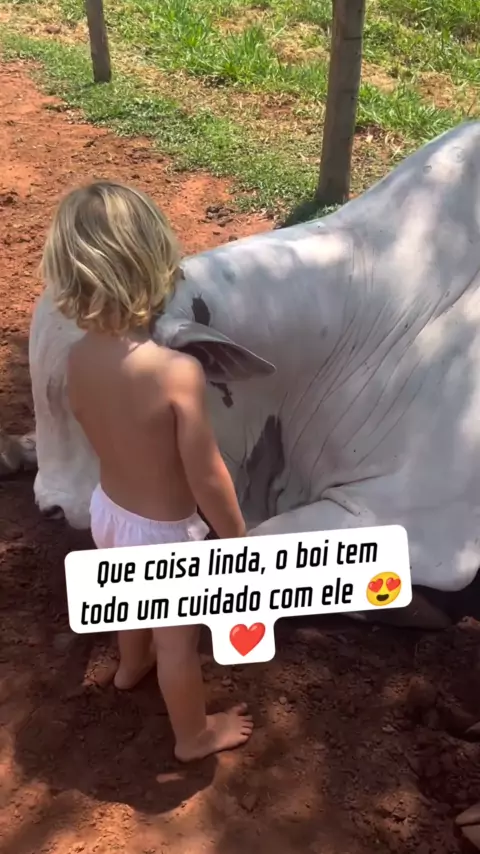 O boi tem um carinho grande com ele 😍❤️ #Criança #baby #viral #kids #Infantil