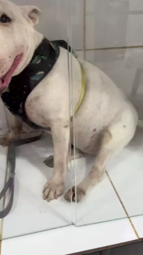 Peguei um Bull Terrier❤️☺️ @estercarv4lh0 @BsBichos Compartilhem muitoo❤️ amo vocês❤️ #bullterrier #cachorrosengraçados #petshop #banhoetosa #videosengraçados #pets # #estercarvalho