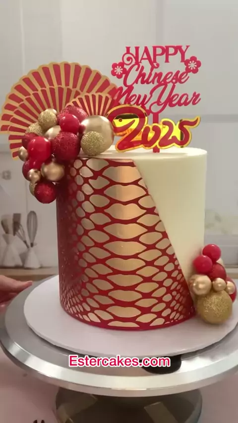 A little bit late, but here is my Chinese New Year 🧧 cake video tutorial Cake comb from Estercakes.com Snake skin stencil from Amazon Gold dust from Angela Morrison#chinesenewyear#cny#yearofthesnake#pastrychef#howto#tutorial#behindthescene##゚viral#cakedesigner#cakedecorator#pastrychef#caketok