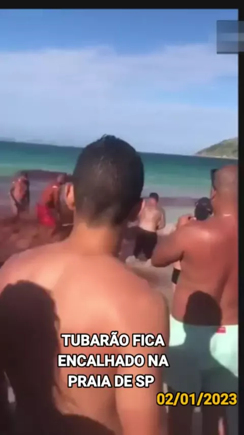 02/01/2023 FBNEWS tubarão fica encalhado na praia de sp/fonte/uol/ #notícias #ultimasnoticias #tubarão