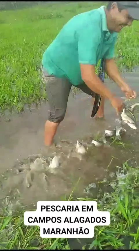 #tempo de inverno os peixes 🐟 🐟 🐟 caem nos campos alagados pelo Maranhão.