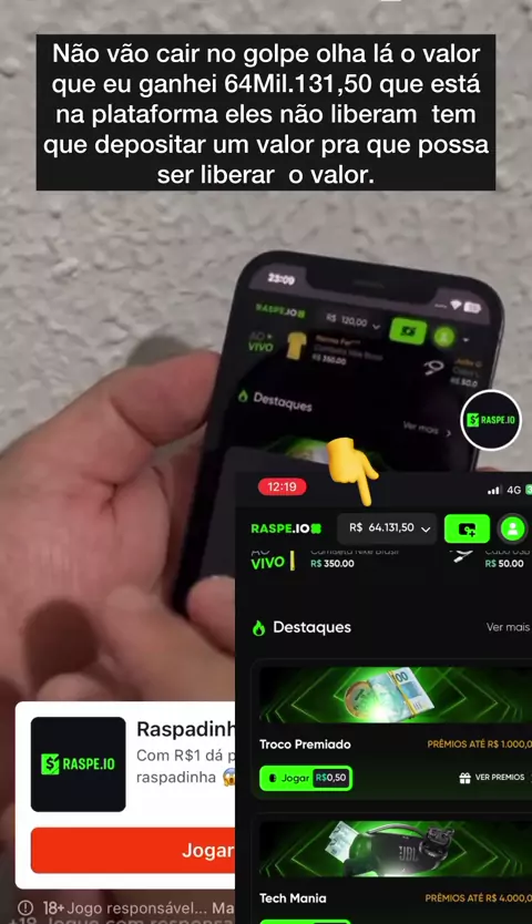 Gente fiz um depósito de 20 reais nesta plataforma, o dinheiro que vocês ganham não é recebido pra você receber você tem que depositar #Raspei.io. Olha o valo que está na plataforma e tem que fazer um depósito para receber o valor estimado de #64 Mil