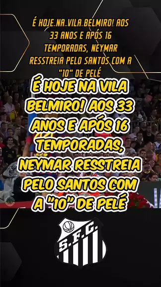 É HOJE NA VILA BELMIRO! AOS 33 ANOS E APÓS 16 TEMPORADAS, NEYMAR RESSTREIA PELO SANTOS COM A "10" DE PELÉ #Santos #Neymar #esporteviral #esporte #Futebol