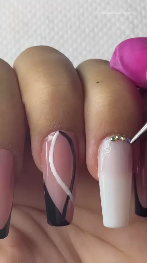 Postiça realista preto e branco #posticarealita #gel #esmaltacao #nails #preto🖤