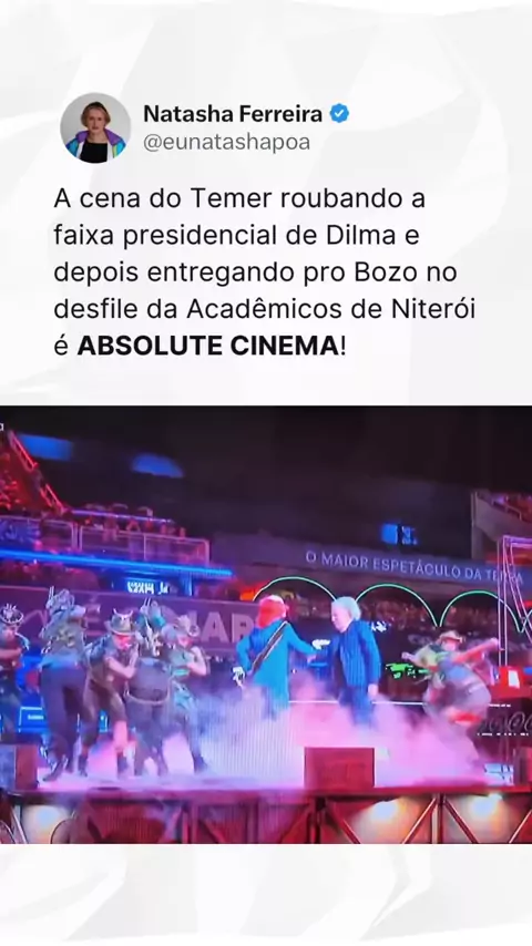 Acadêmicos de Niterói entregando TUDO nessa coreografia aqui, viu? Hablou mesmo sobre o golpe de Dilma, o vampirão do Temer e o Bozo ganhando a faixa presidencial com a pose de arminha. AMO! #carnaval2026 #globeleza #academicosdeniteroi #lula