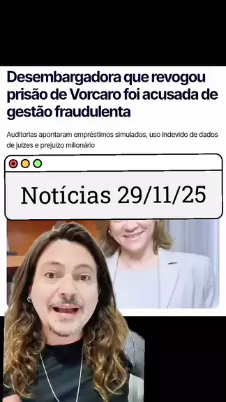 Desembargadora que revogou prisão de Vorcaro foi acusada de gestão fraudulenta, Daniel Vorcaro vai comemorar soltura com vinho de 6 mil reais, Crise do Banco Master alcança Tarcísio após PF mirar doador de sua campanha, Aliança União Brasil-PP vive divisão interna, saídas e apreensão com Master e Refit, Centrão teme expurgo se Refit, Master e Carbono Oculto forem até o fim, Delação de ex-presidente do BRB e celular de Vorcaro disseminam pânico em Brasília, CPI do Banco Master ganha força no S...