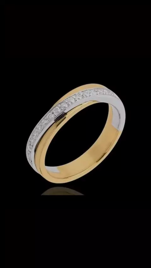 Meia Aliança Em Ouro Amarelo E Branco 18k Com Diamantes! #flaviosjoalheiros #anel #ouroamarelo18k #ouro18k #ouro