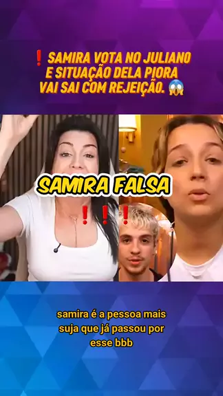 Samira vota no Juliano, vai sair com rejeição. Fonte Internet #bbb26 #fofoca #BomPraKWAI