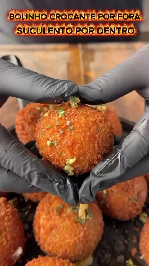 Esse bolinho crocante com queijo é simplesmente O MELHOR DO MUNDO! Quem ama um queijinho assim comenta 👇 “EU AMO!” . . #churrasco #bolinhofrito #foodlover #gastronomia #comidaquente