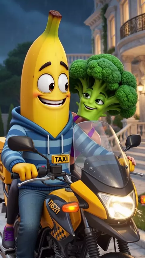 Do asfalto para a mansão! 🍌🥦 Quem mais aí ficou surpreso com a casa da Mulher Brócolis? O Banana quase caiu da moto! 😂 O que você faria no lugar dele? #HumorTikTok #VideoViral #FrutasAnimadas #Storytelling #ComédiaBrasil