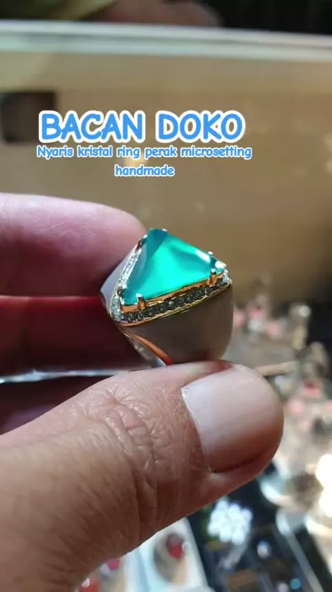 Bacan doko nyaris kristal bentuk segitiga unik,ring perak microsetting handmade#bacancutting#bacanhqgiwang#bacankristal#batubacandoko#indobacangems#bacandoko#accessories#fashion゚