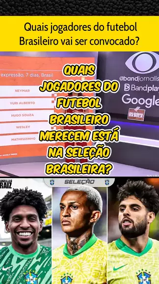 Quais jogadores destaques do futebol brasileiro deveria se convocado pra seleção brasileira?? Neymar, Hugo Souza, Yuri Alberto e Wesley!! #Corinthians #Neymar #FLAMENGO #esporteviral #ultimasnoticias