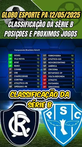 Globo Esporte 12/05/2025 Classificação da Série B Remo x Paysandu na série b #Brasileirão2025 #SerieB #classificação #hojenoticia #ultimasnoticias